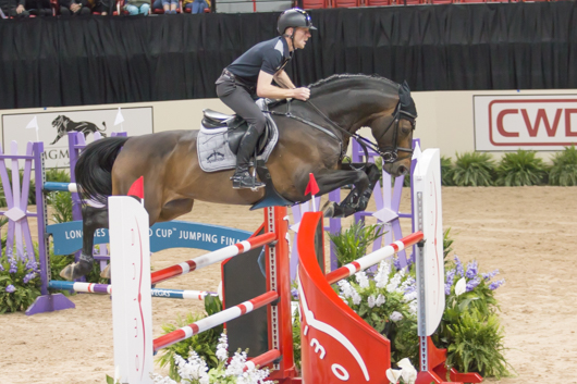 Singular och Markus Ehning på banvisning och uppvärmningshoppning i Thomas & Mack Arena i Las Vegas.