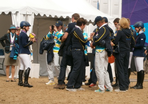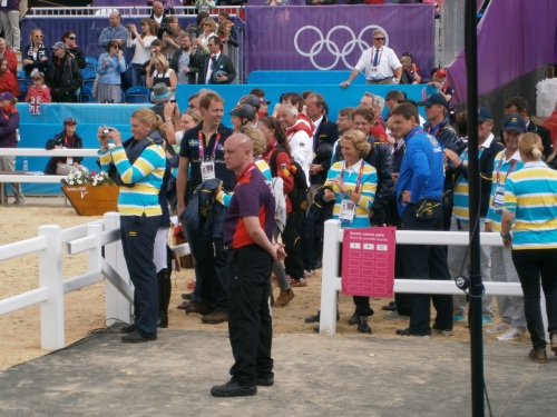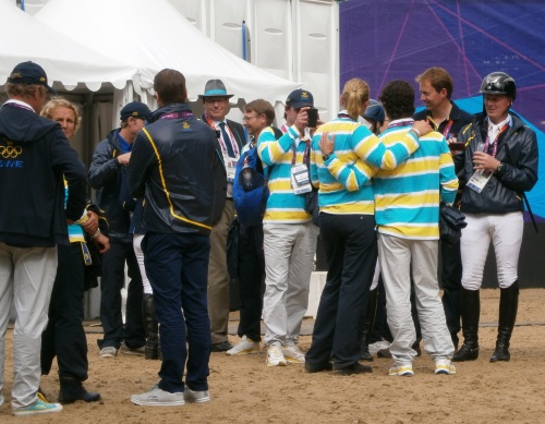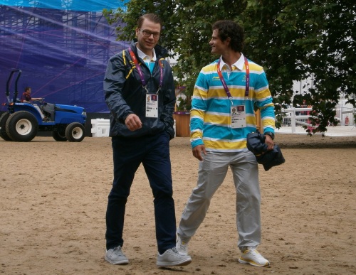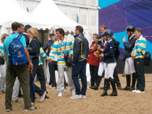 Prinsarna tog sitt pick & pack och promenerade genom mixed zone. Fattas bara att det är kungligheter på plats när fälttävlan fixat Sveriges första OS-medalj i London!
