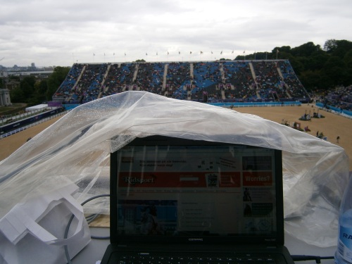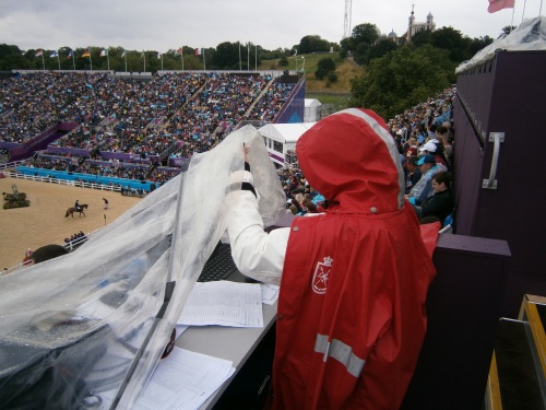 …och till slut såg jag ut så här. Inte så glamouröst kan jag lova! Tak är inget som OS-arrangören har tänkt på. Men det är klart, det regnar ju inte så ofta i England.