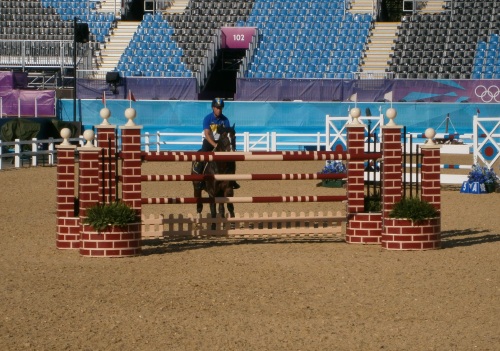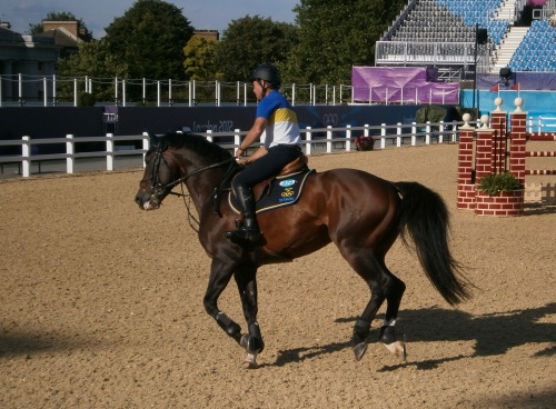 Till trevligare saker, nu är hoppryttarna här och det med dunder och brak. Äntligen lite fart på stället! I kvällssolen testade de banan, med varierat resultat.
