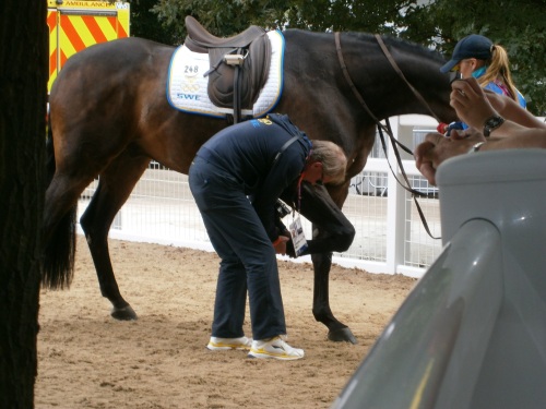 Jag gillade Tinne och Antons program idag, det är en himla fin häst och nog den bästa Tinne haft. Landslagsveterinär Jonas Tornell fanns på plats utanför arenan och kollade av hästarna efter ritterna.