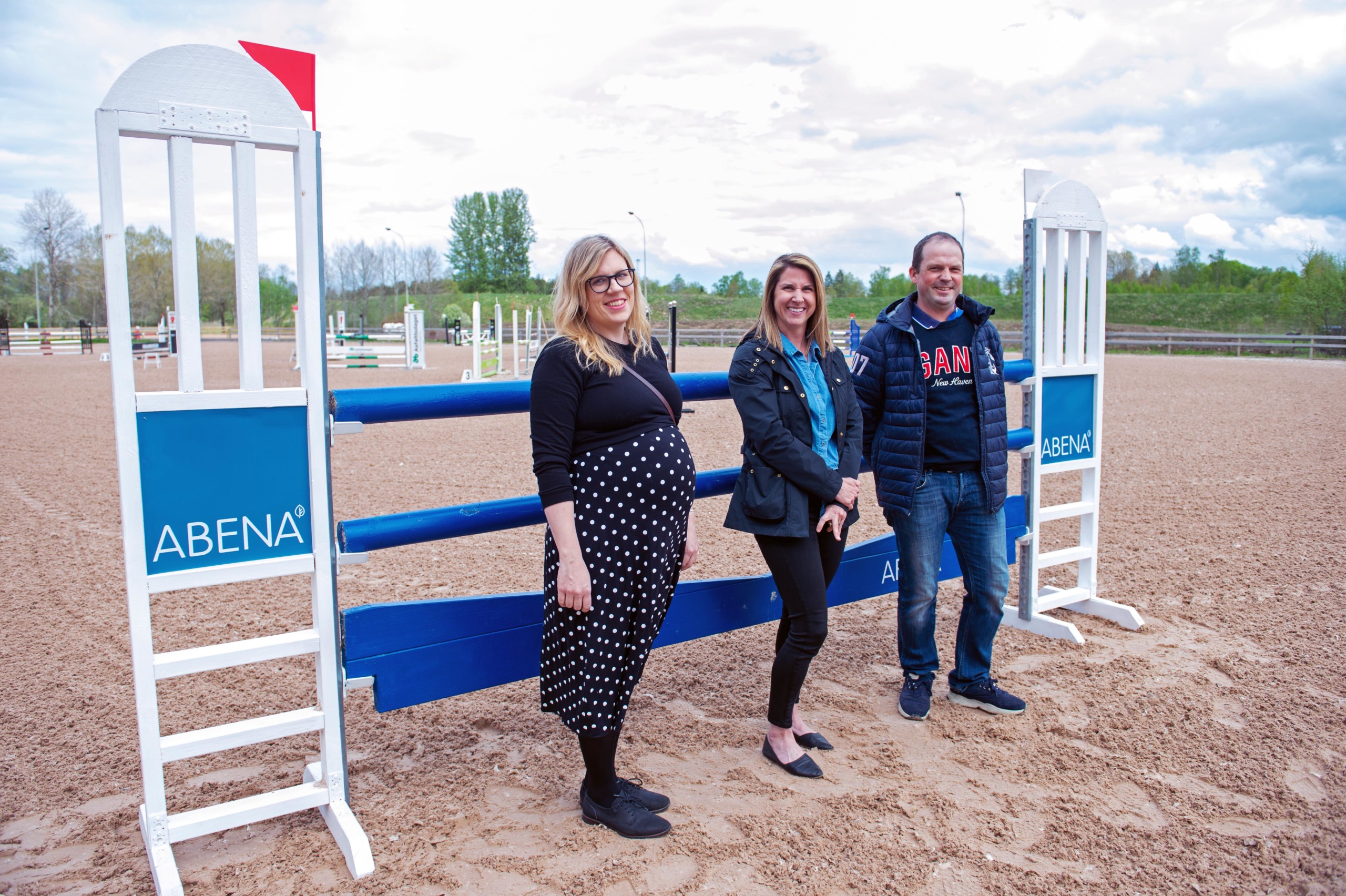 Abenas marknadschef Sanna Davidsson och vice vd Camilla Hiljanen tillsammans med Växjöortens Fältrittklubbs ordförande Tobias Jönberg.