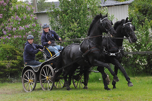 Axel Olin vann maraton med sina svarta parhästar. Foto: Eva Österlund.