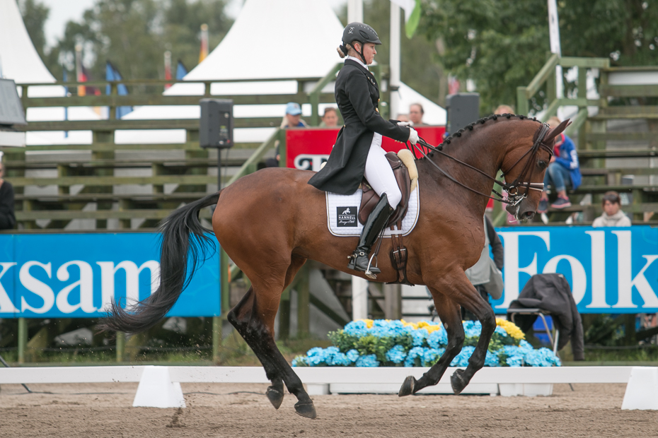 Marie Munthers med Bjergagergaards Indeed (DWB sto f -08 e Hofrat – De Niro, uppf Eva, Ebbe&Steffen Hovedskov, äg Hannell Dressage Stable AB) red en felfri ritt, bättre än i kvalet och fick 70,695 procent.