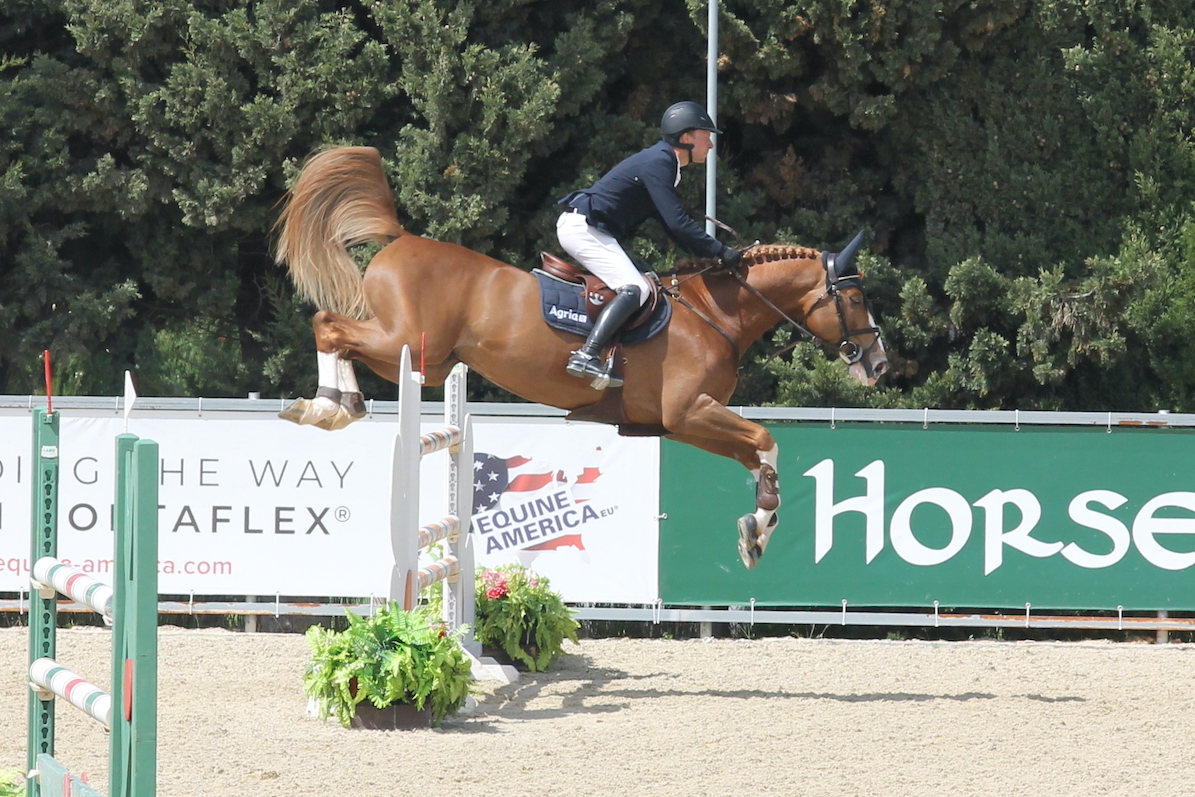 Han är solbränd och framför honom på bordet utanför en av flera restauranger på tävlingsområdet ligger den rosett som 6-åringen och godkände hingsten Asterix de Couleur (OS e Aganix du Seigneur-Hickstead, uppf Hartwig Schoof, äg Stall Fulltofta) plockade hem genom en femteplats i onsdagens final över 1,30-hinder för 6-åringar.