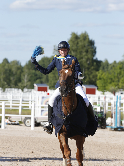 Lucas har haft en fin säsong med internationella framgångar. På NM var han på topp när det verkligen gällde och efter fyra omgångar var det bara två helt felfria i täten. Lucas mötte därmed danska Marie Björn Henriksen/Tops Taloubet T i den slutliga guldkampen. Marie hade ett ner och då hängde allt på Lucas. Trots spänningen behöll Lucas sin järnkoll och säkrade den sista nollan som bärgade guldet.