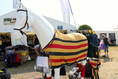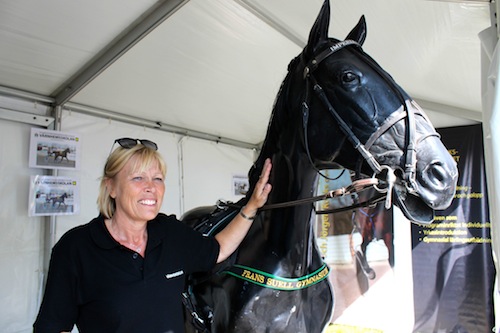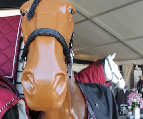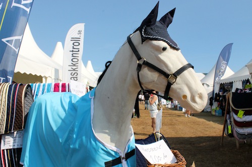 Den här lugna, nästan sävliga, hästen har med sig ett helt gäng med kompisar. Totalt är de fem hästar i samma monter. I måndagens hetta stod de huvud mot svans, men det var dåligt med flugviftande svansar, i allafall under Ridsports besök.