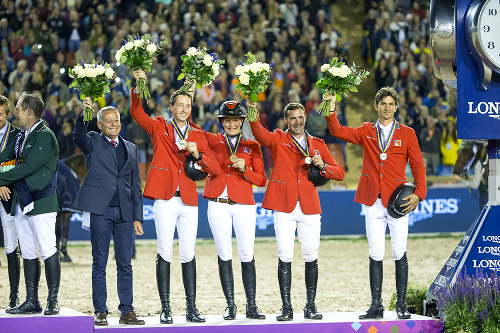 Schweiz har flera gånger varit på pallen i lagsammanhang. På EM tog de brons 2015, guld 2009, silver 2005 och brons 2003. Schweiz ledde i Göteborg efter den första hoppningen, föll ett snäpp neråt i går och blev i dag slutligen bronsmedaljörer på nytt.