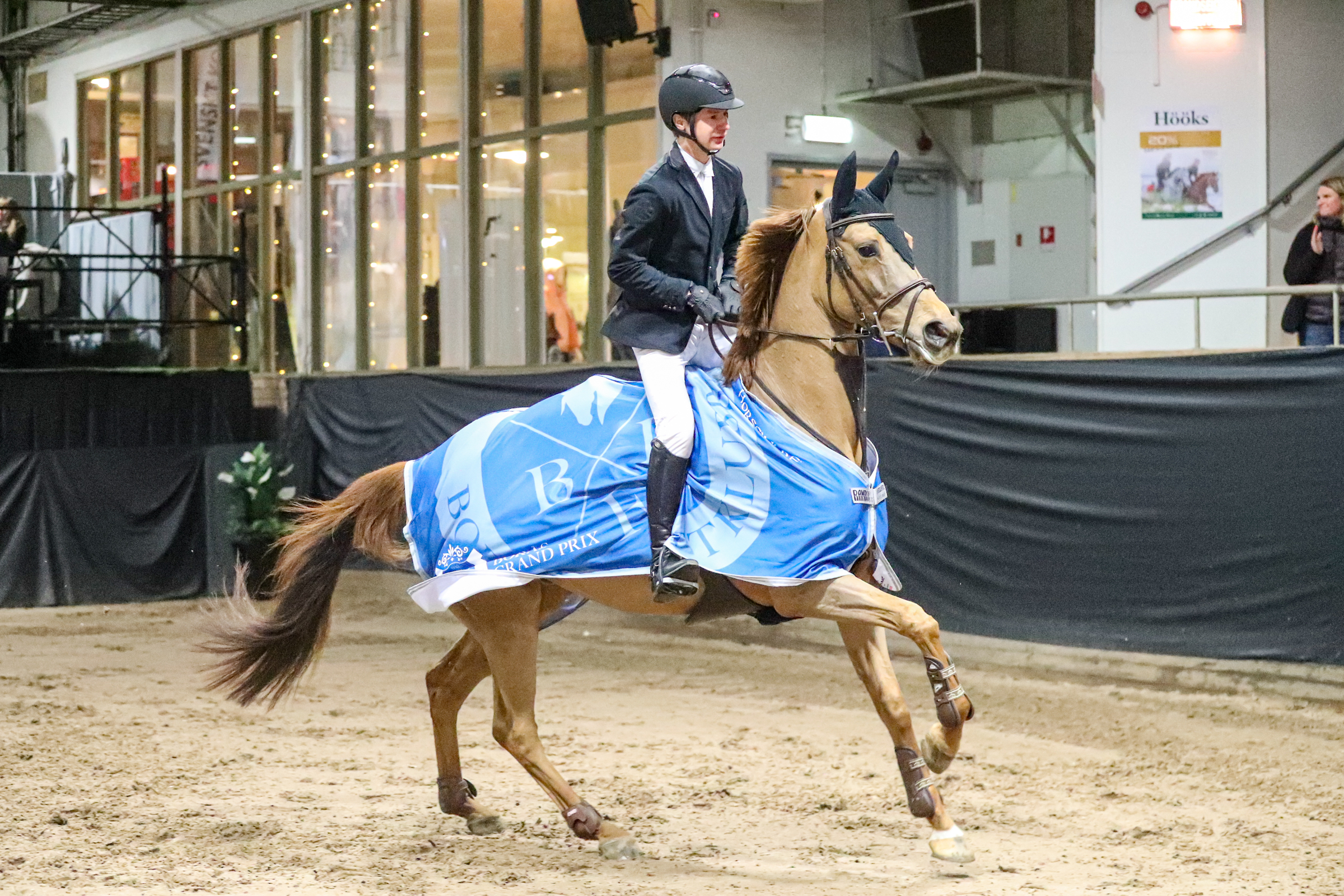 På lördagens kväll reds det också en 1,45-klass med 18 starter. Jüri Sokolovski, Skyrup Country Club Ryttarförening, vann tillsammans med Järta som en av fyra dubbelnollor.
