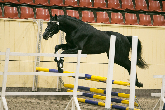Hingst med ganska god reaktionsförmåga, god framåtbjudning, samarbetsvillig, hoppar Med hög nacke och stram överlinje i hoppet, blir lite överilad och skulle tänkt sig för bättre.