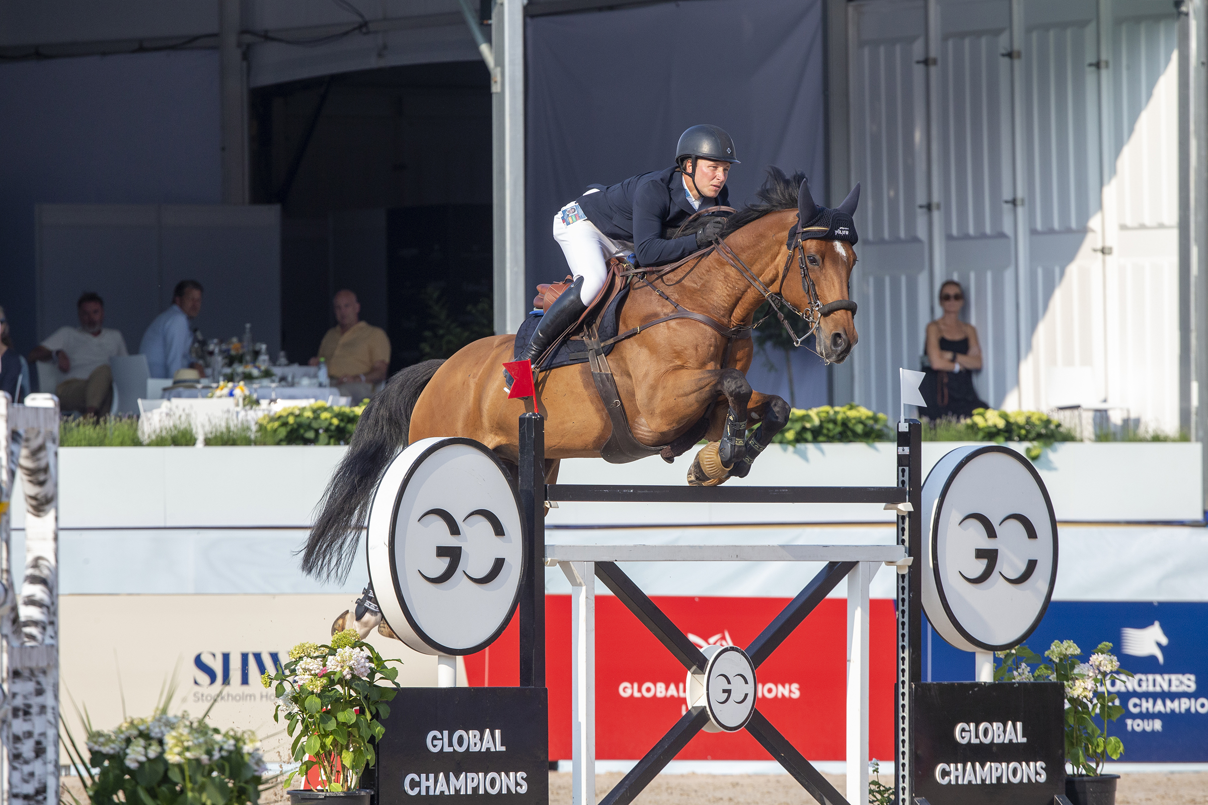 Douglas Lindelöw och Cheldon visade en spänstig och fin hoppning. Det blev lite darr på ribban i mittenhindret i trekombinationen men bommen låg kvar. Däremot kom det ett nedslag på samma hinder som Angelica Augustsson Zanotelli, men här var det frambenen som inte riktigt hann med upp. Det blev också lite tidsfel och totalt 6 fel.