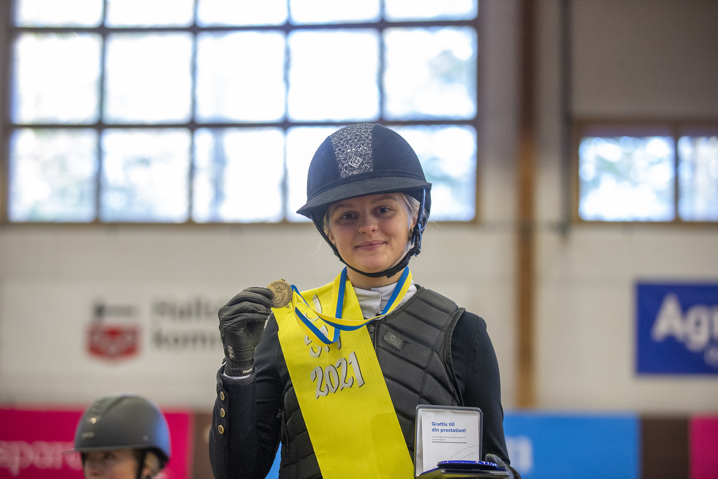 – Som jag har kämpat för att sätta den där nollan i 1,40. Och så gjorde jag det här på SM, två gånger på raken dessutom, säger den lyckliga svenska juniormästaren i hoppning, inomhus.