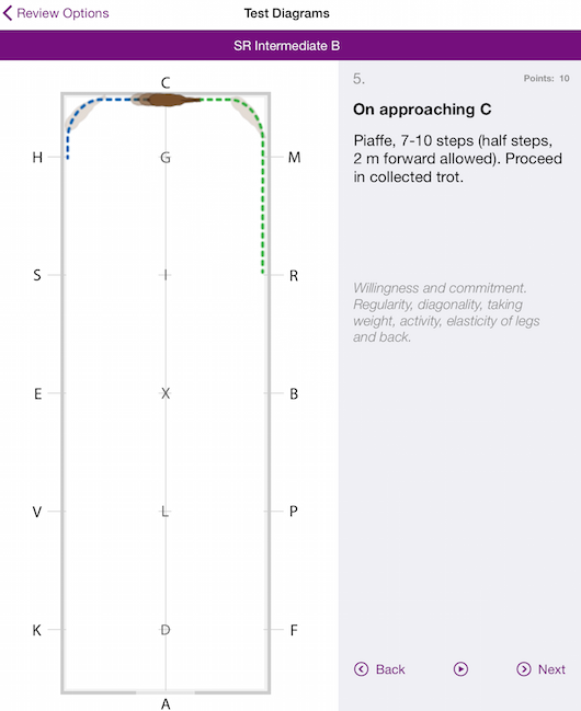 Equi Tests 3 Dressage Appen innehåller en hel del värdefulla funktioner som möjlighet att se vägarna grafiskt.
