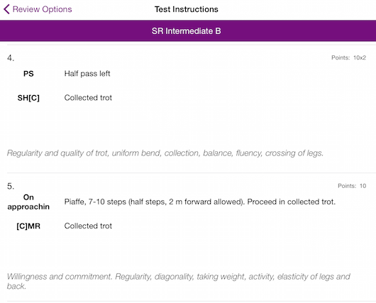 Så här ser moment 5 ut i Equi Tests 3 Dressage Appen