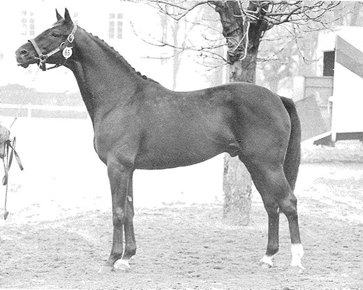 Hopphästen som tillsammans med Nick Skelton tog guld har en brokig bakgrund. Ett engelskt fullblod hittas i fjärde led framför en angloarab (fast redan i tredje led finns travare).