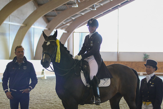 Domare i kürklassen var Bo Åhman, Annette Fransén Iacobaeus och Susanne Rudholm, en trio som var överens i det mesta. Samtliga hade Charlotte och Triviant som etta efter att ekipaget genomfört ett uppdaterat kürprogram där ekipaget fick två 8:or och en 7,5 för den viktiga piaffen. Den visade Triviant vid flera tillfällen, hela tiden med fin takt och lyft, stark och rytmisk.