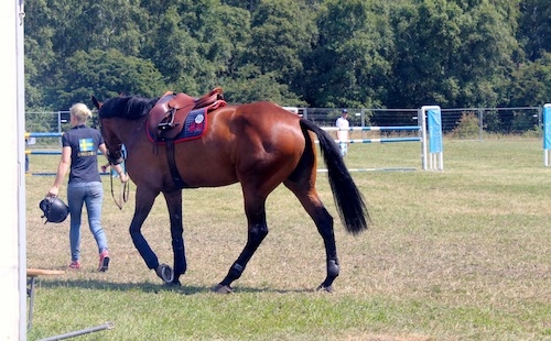 Svenske hoppryttaren Royne Zetterman laddar för lördagens kval till Grand Prox-hoppningen.